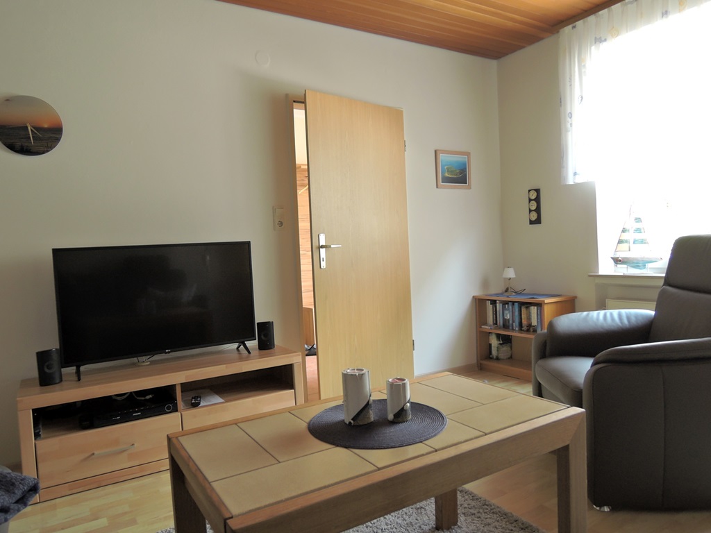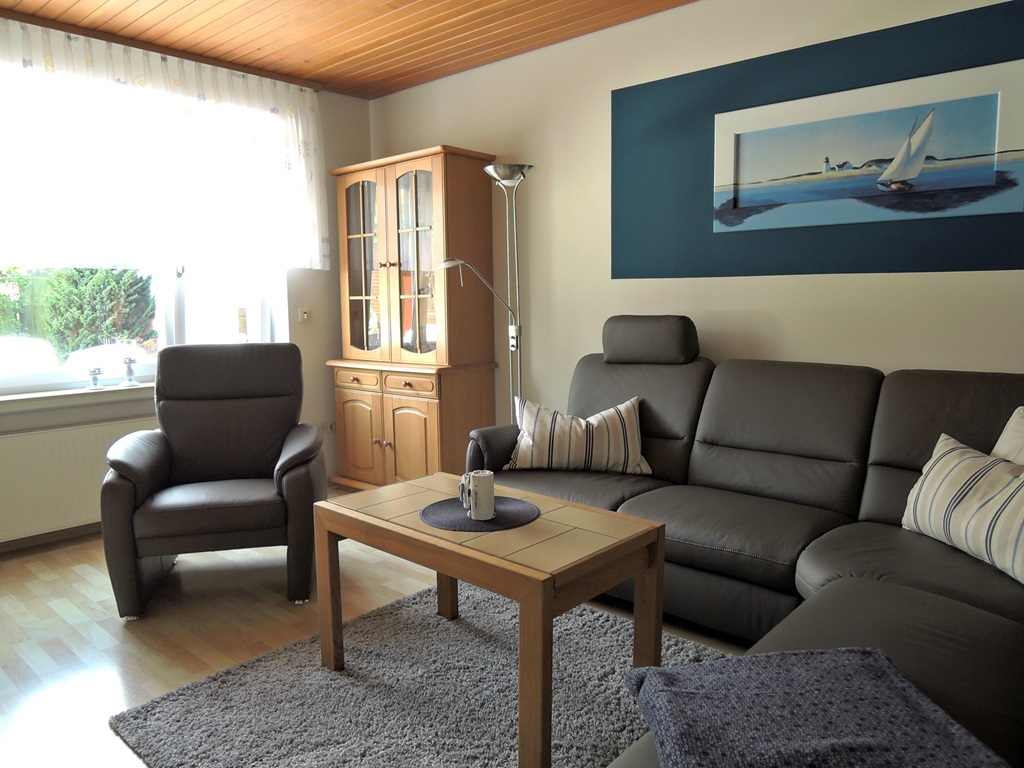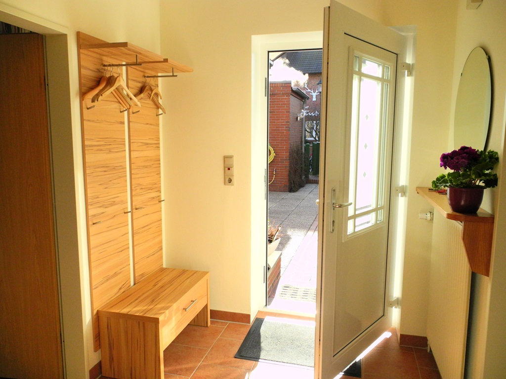 Das Ferienhaus hat einen Vorgarten, ist durch Bäume und Büsche von der Straße getrennt und liegt in sonniger, geschützter Süd-Ost Lage.